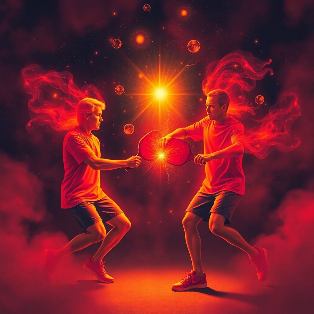 In calm before the cosmic storm.Where paddles clash and courts divide,