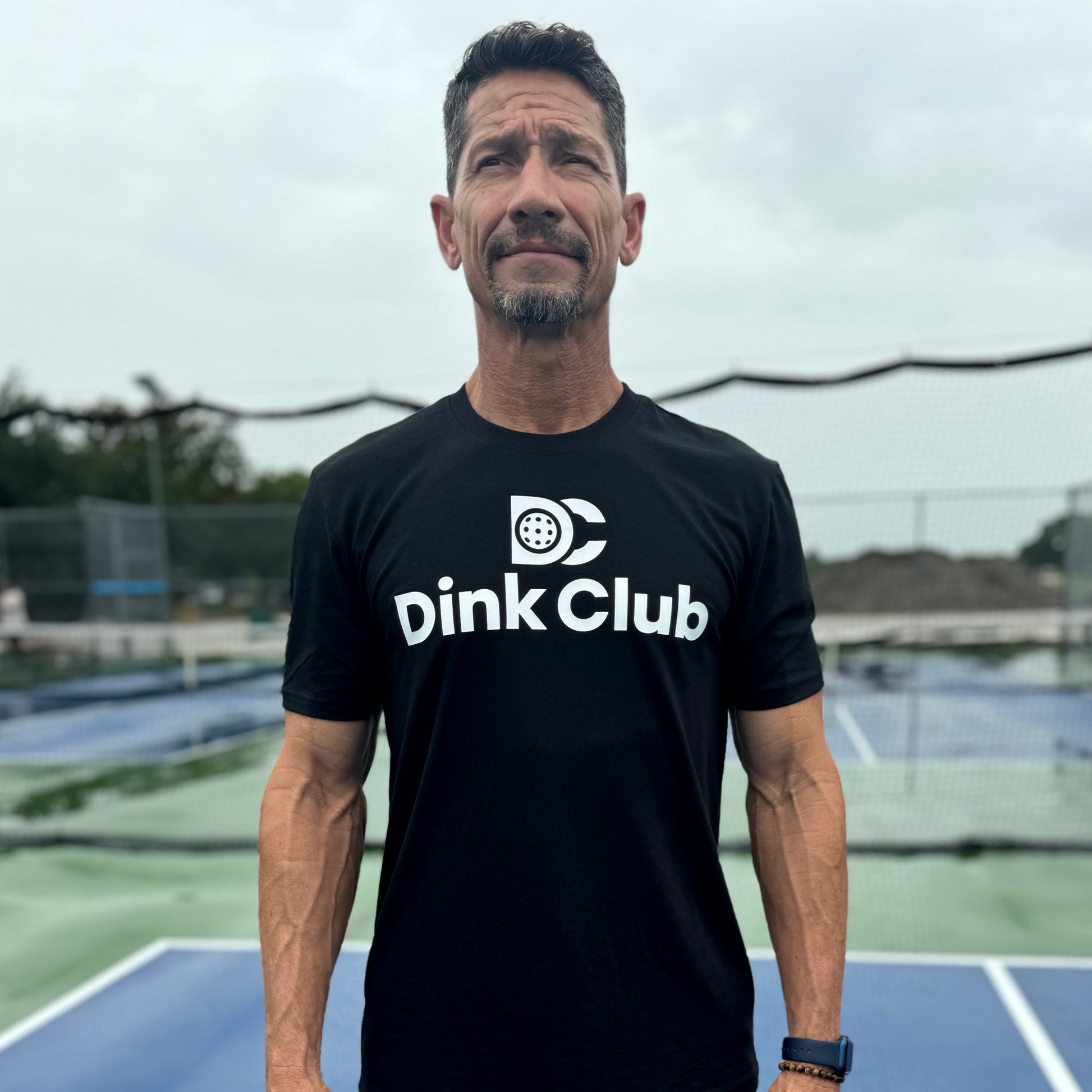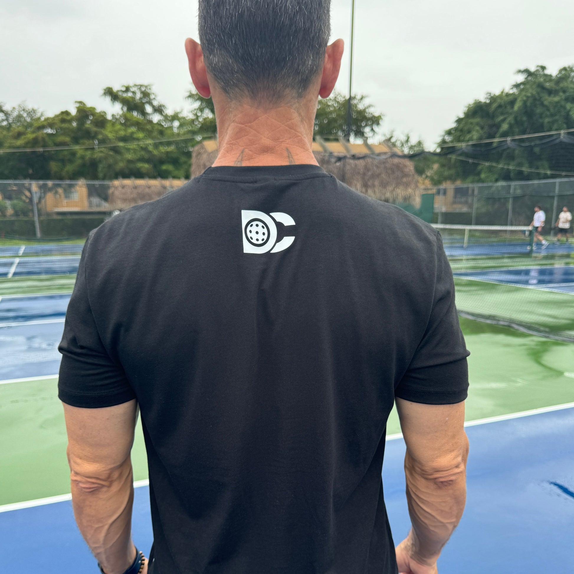 The Dink Club OG Tee. Our first tee and still popular tee. Our original Dink Club Tee is enhanced with stretch technology to prevent shrinking and increase durability at the same time giving you that fitted look. This style comes in black or white with the option to add your City below the logo.