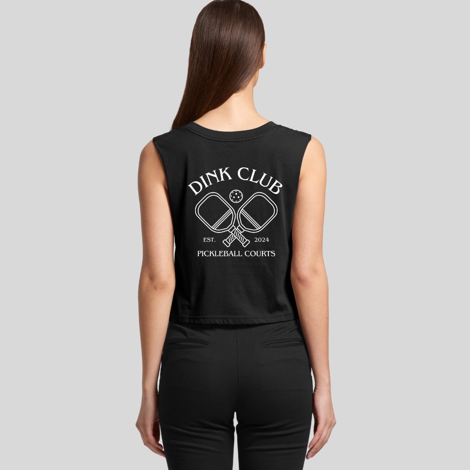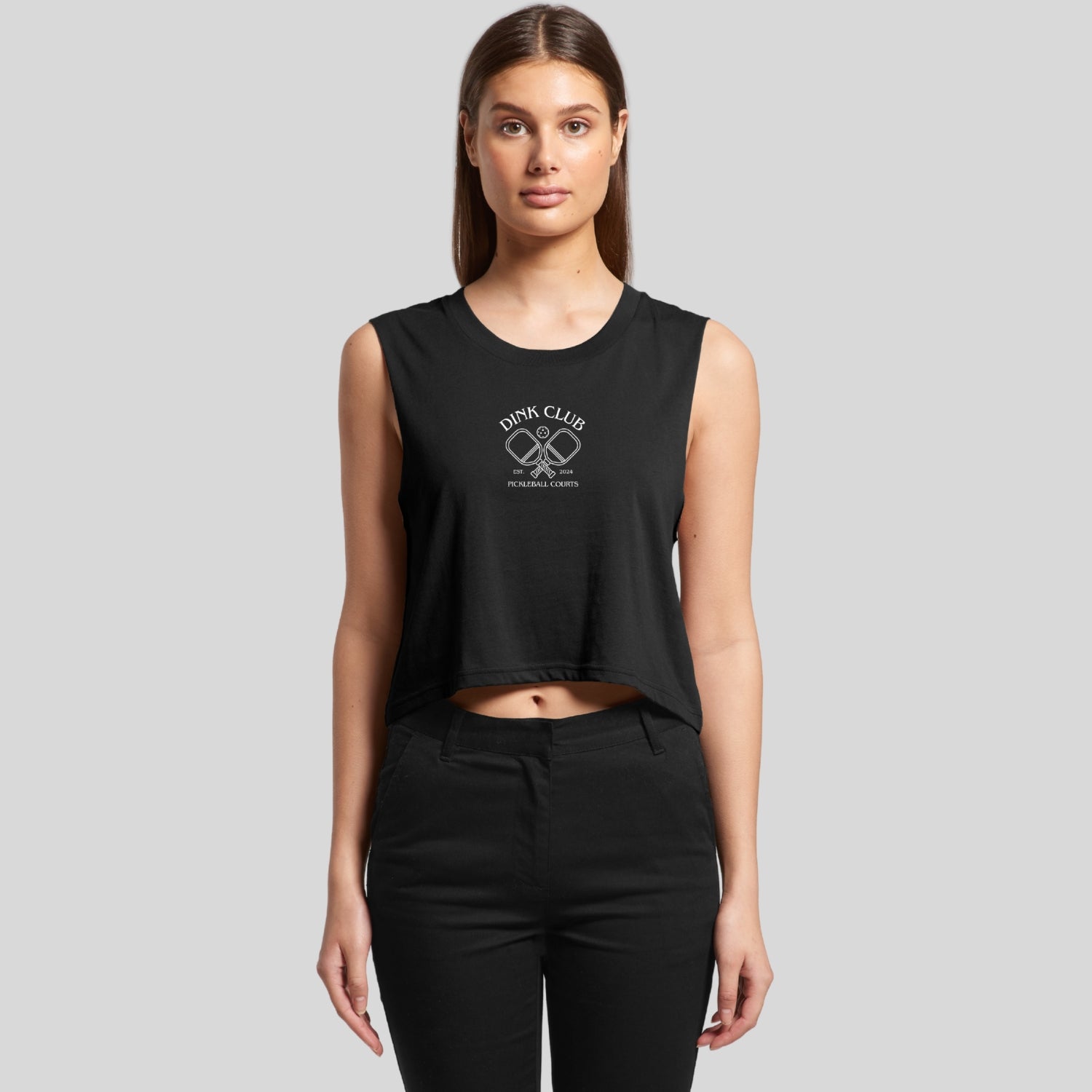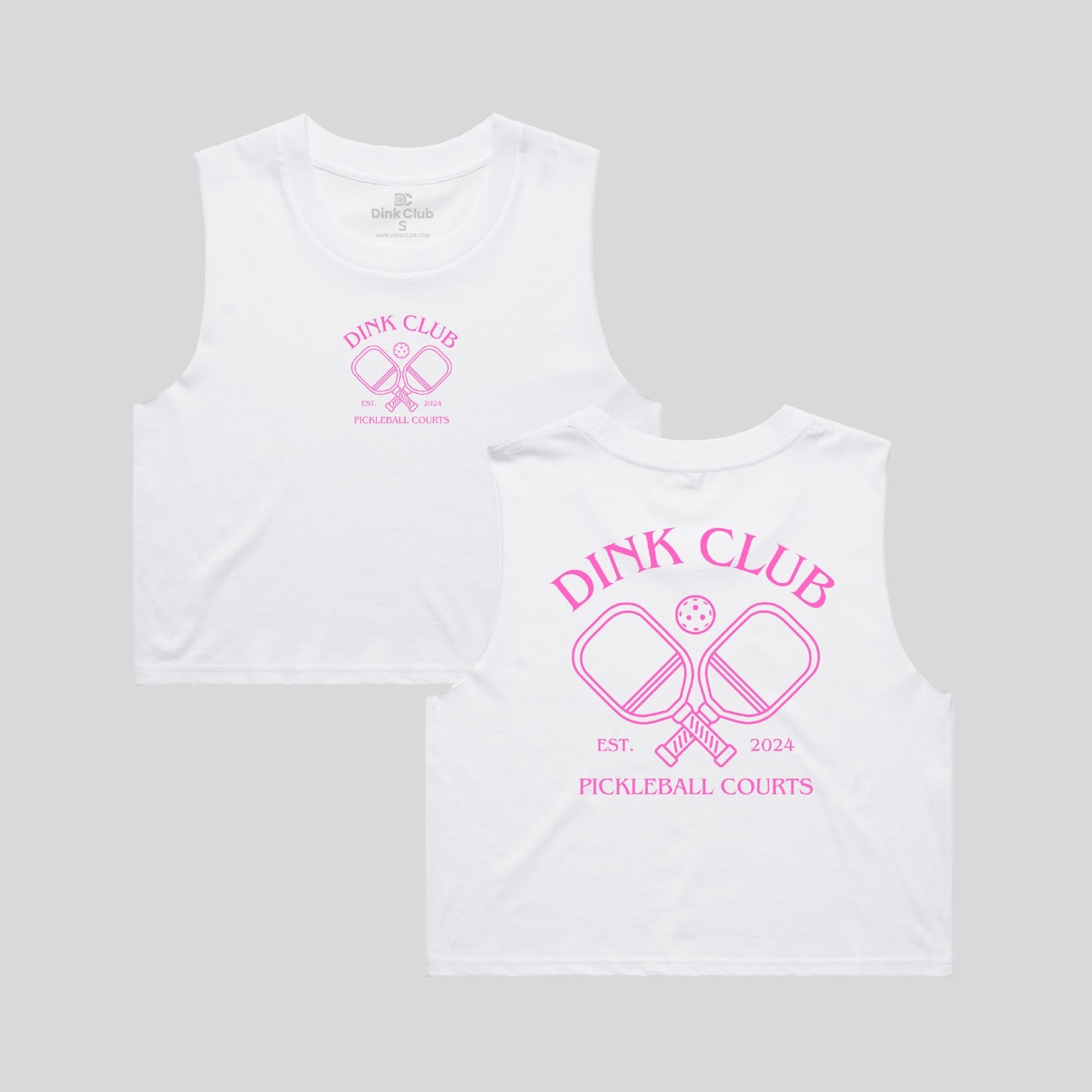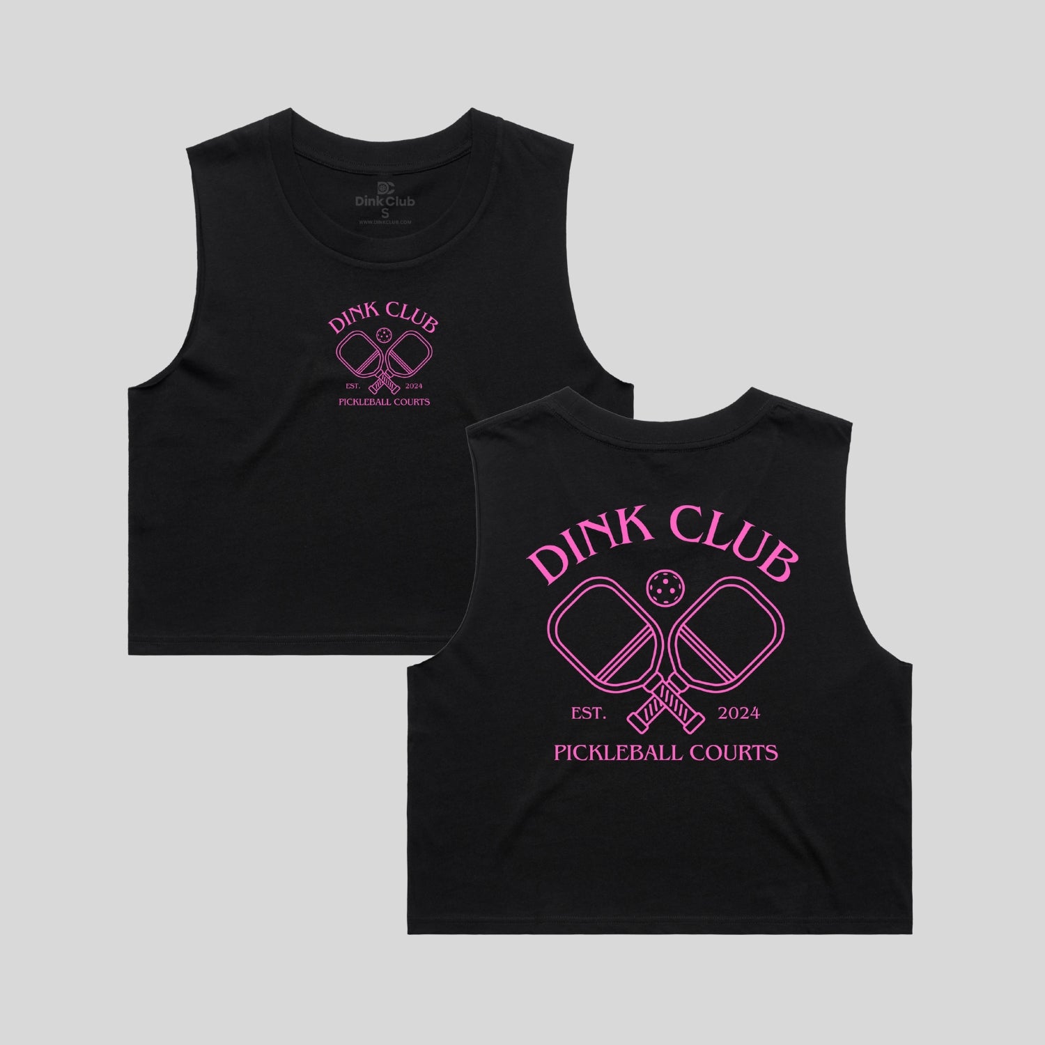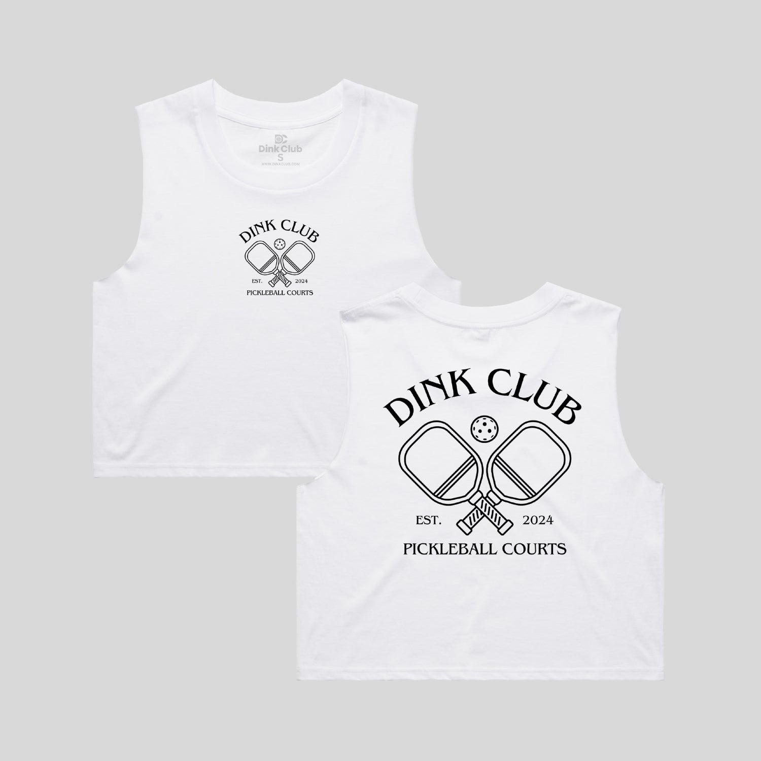 Short body, sleeveless tank, raw armhole edges, neck ribbing, double needle hems, side seamed, preshrunk to minimize shrinkage